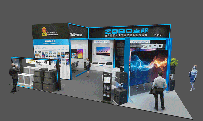 本次ZOBO香蕉视频APP在线观看展位(E館EH8-01),分為文體場館空間、智能會議空間、全網絡化空間。在這裏,您將一覽擁有前沿技術的多款音視頻產品和完善的空間視聽解決方案。