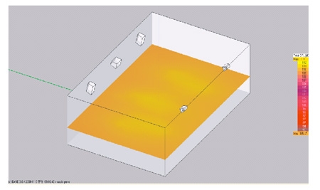 此圖可讓你直觀的知道聲壓是否達到指標,在這裏廳堂的大部分麵積聲壓達到107dB超出一標準,並擁有足夠的預量,能保證係統可靠的運行